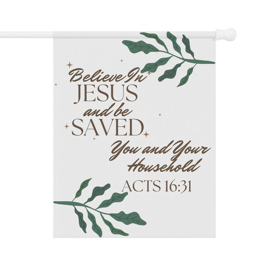 Believe In Jesus - Christian Garden Banner - Acts 16:31